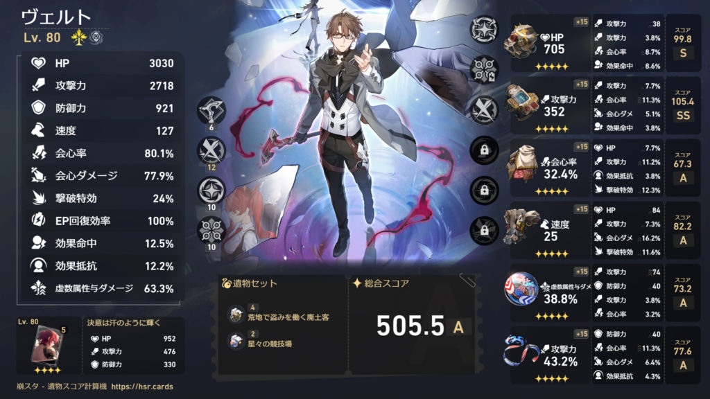ヴェルトはもうこれで完成でええやろ感あるんですがまだ先目指してもな……(会心率が超ギリなのでここから崩す難易度が高い)