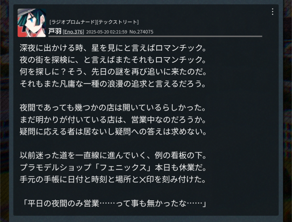 大体定期ゲのレスのこと漫画的にとらえているので、こういうレス形状とかセリフのテンポ感で遊ぶことが多いかもしれない。