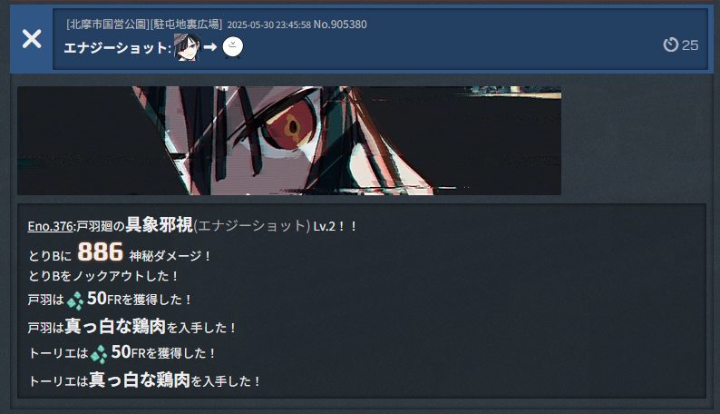 北摩、今朝方初めて戦闘をしたんですが意外と色々な人が喋ってくれて楽しかったので、朝方はねらい目なのかも。