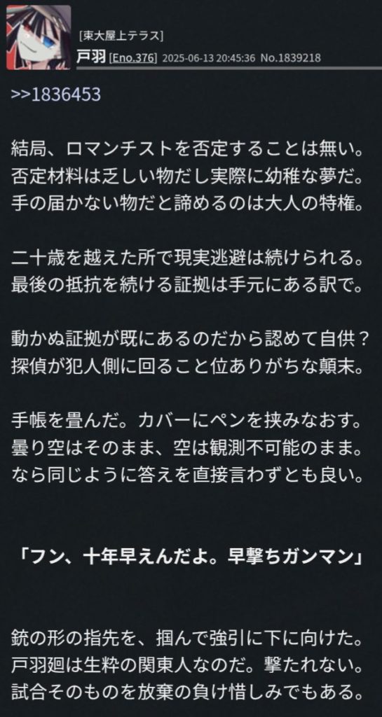 早撃ちガンマン呼ばわりしてるってことは相手の言は当たってんだよな。解説コーナーおわり。私の負けです(届かぬ叫び)